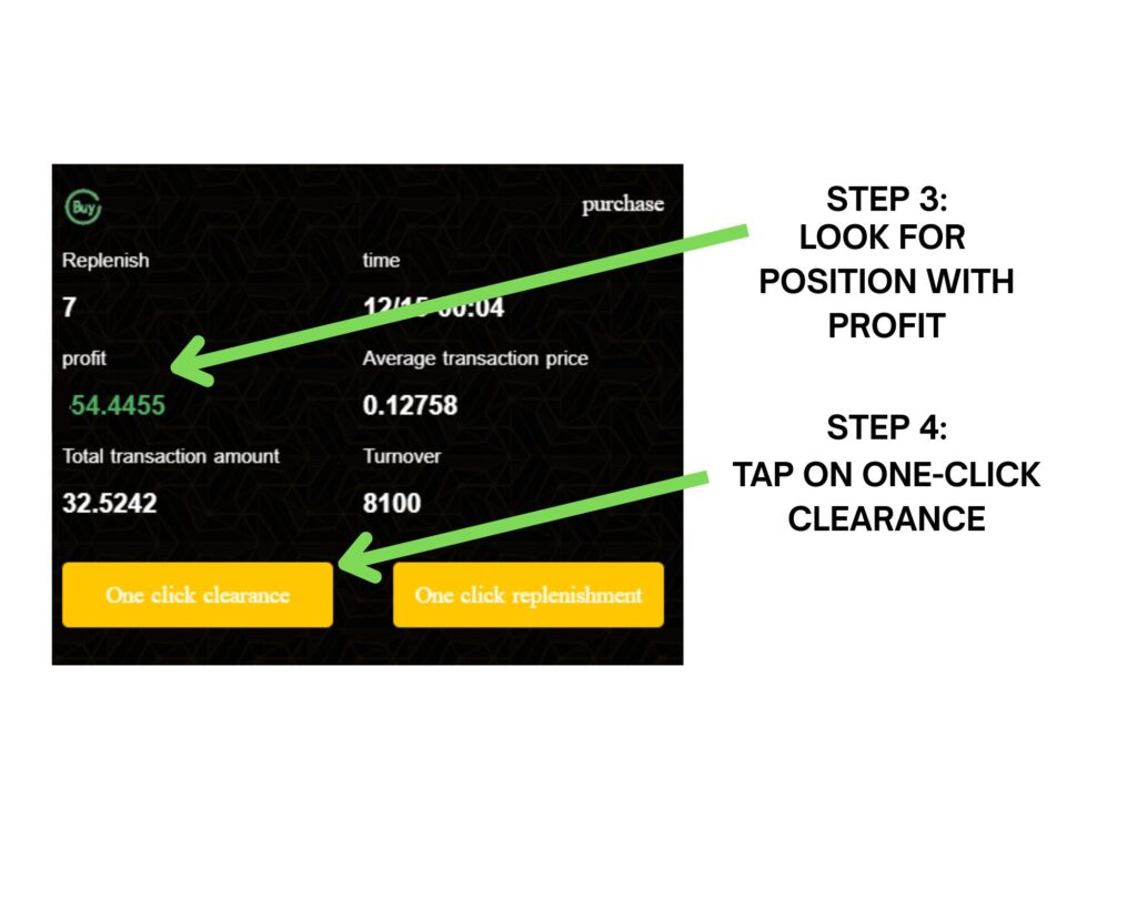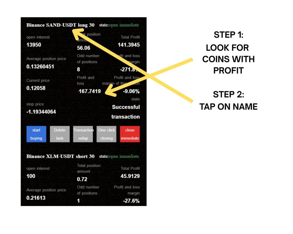 This method is faster. It closes positions right in the bot app. Use it for single positions or when both sides look good.